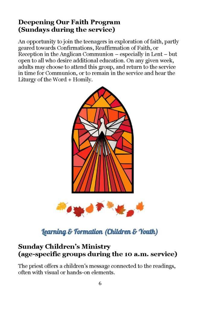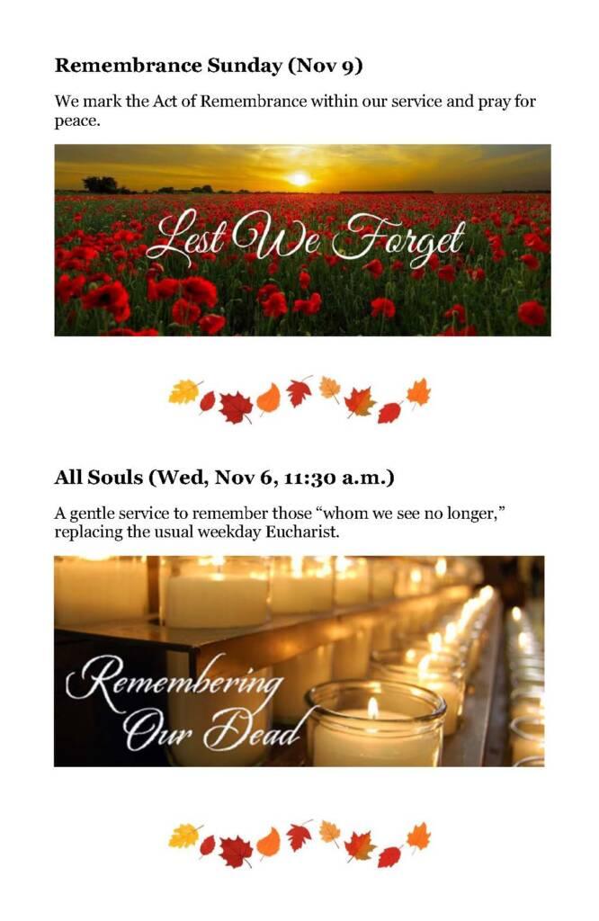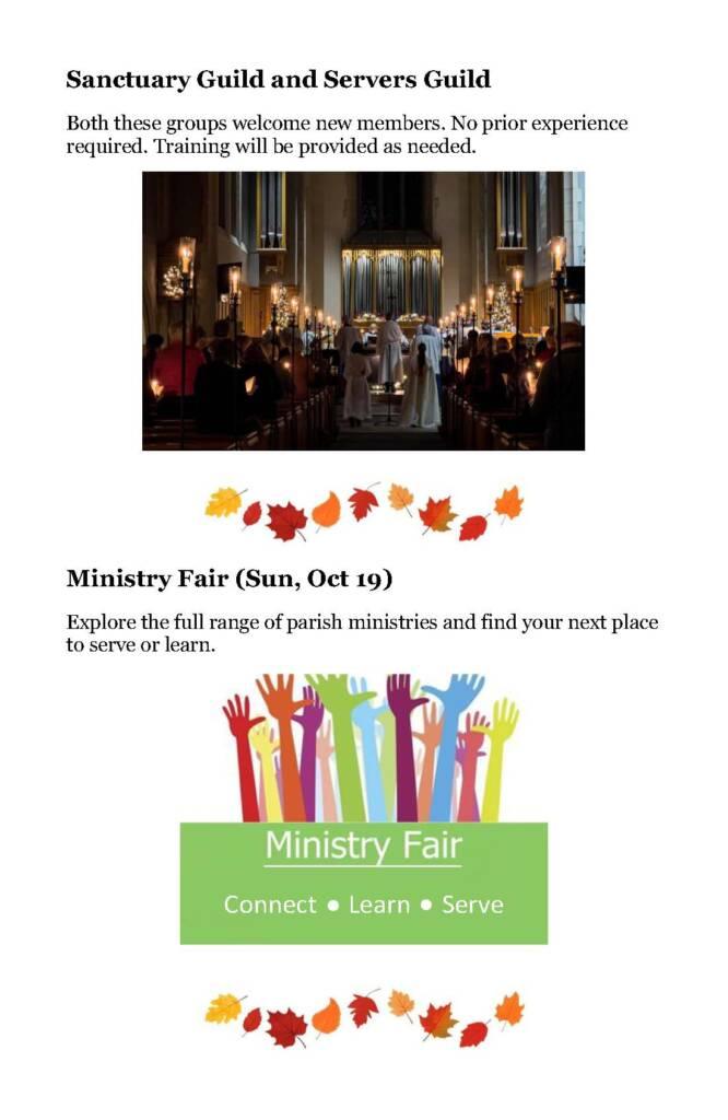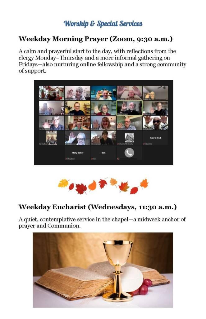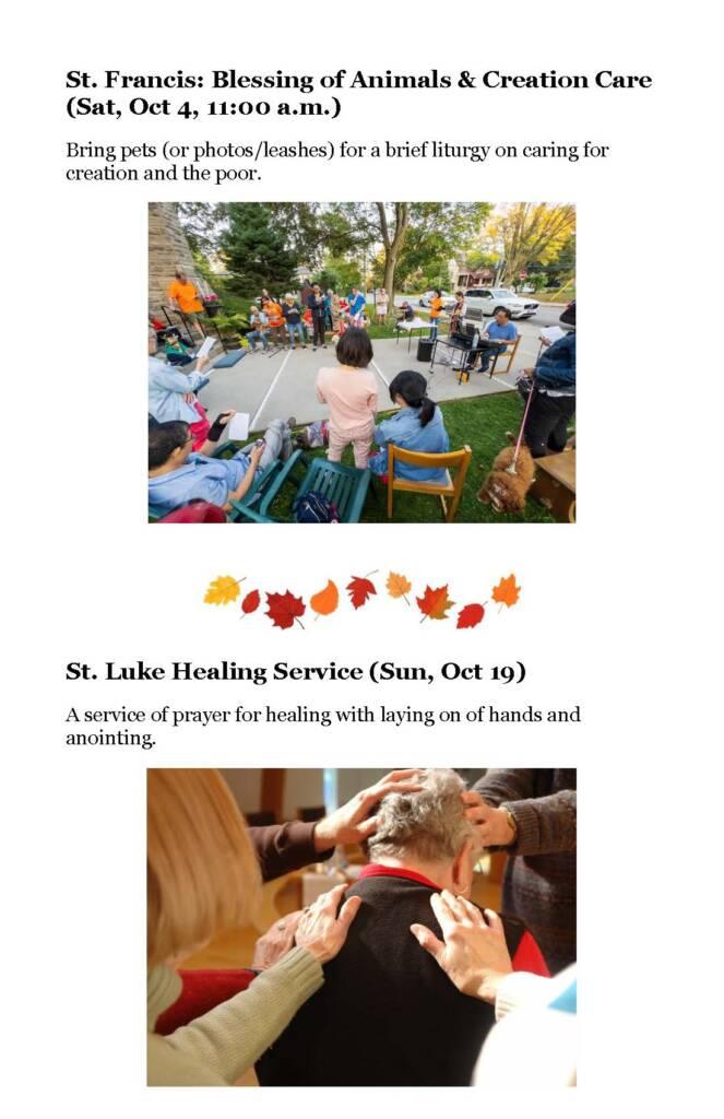 A Seasonal Guide to worship, education, services, and social activities between now and Advent.