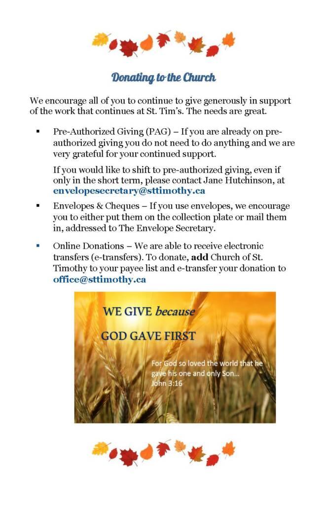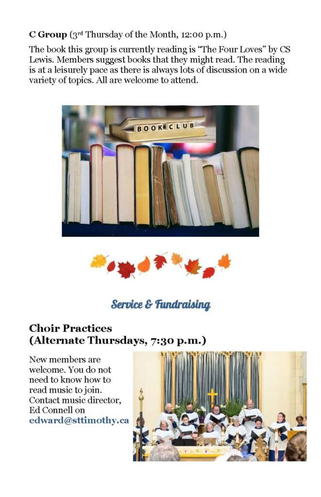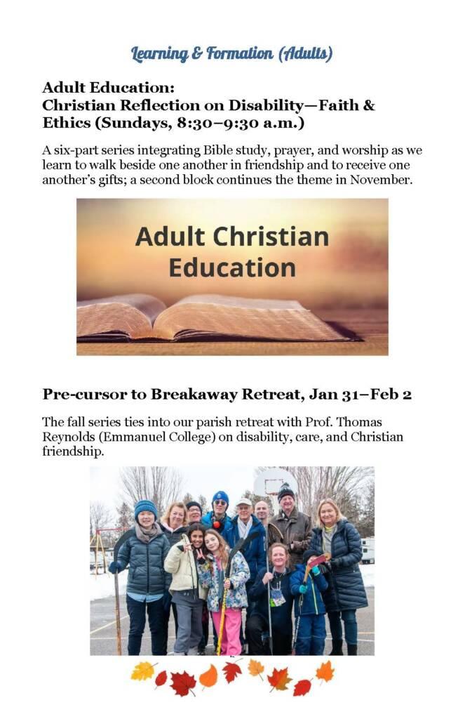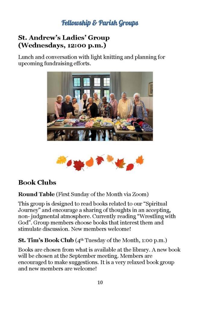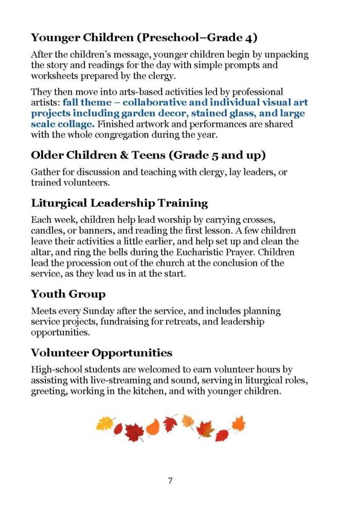 A Seasonal Guide to worship, education, services, and social activities between now and Advent.